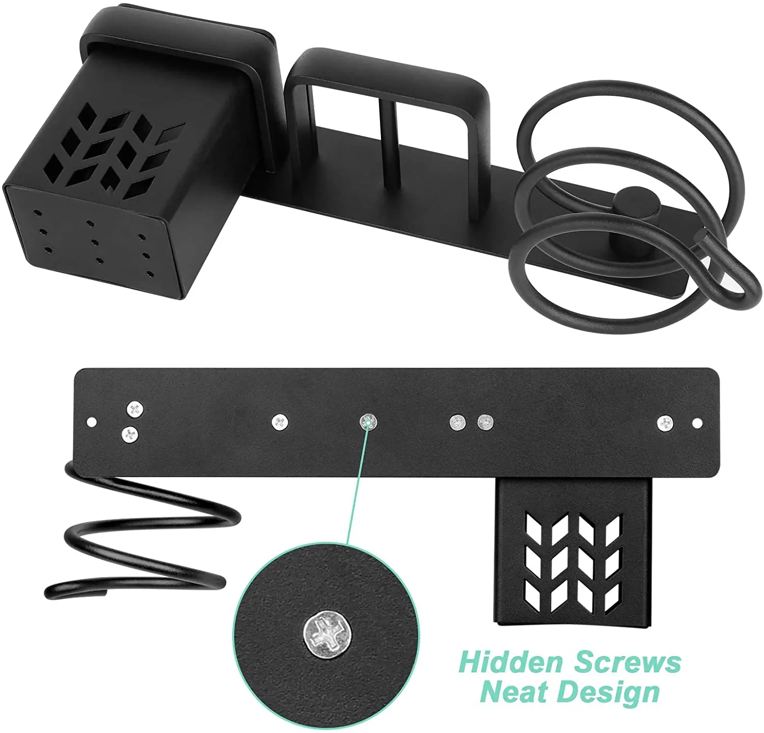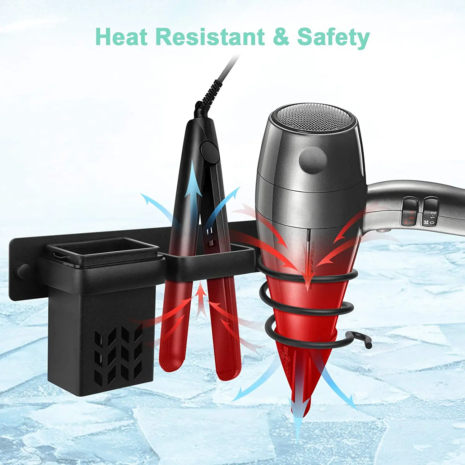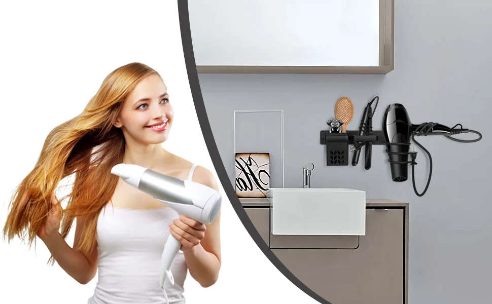Made of high-quality space aluminum, the hairdryer holder is anti-rust and high-temperature resistance. Strong material and the open separate design safely store your hot tools to cool down, and never worry about it will hurt you or your families.