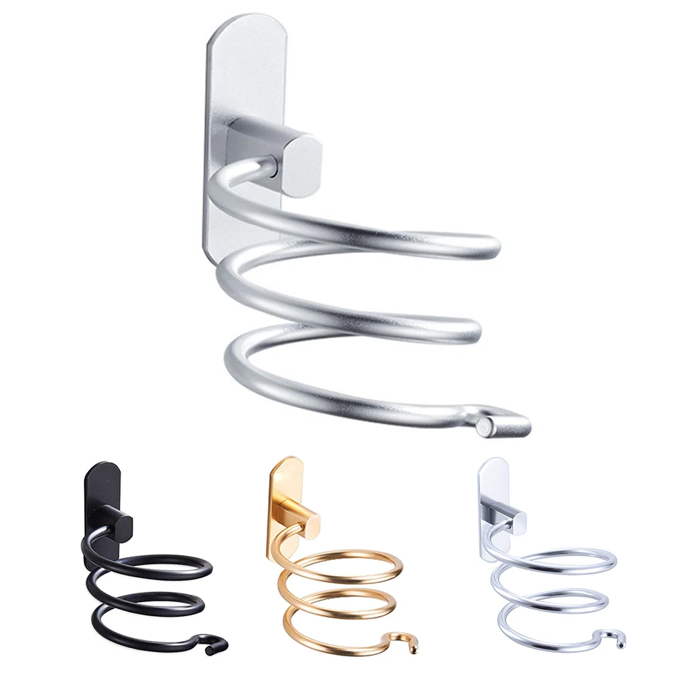 Hair Dryer Holder Wall Mounted Organizer Spiral Stand Holder Rack Aluminum Bathroom Shelf Storage Bathroom Accessory Wall Shelf