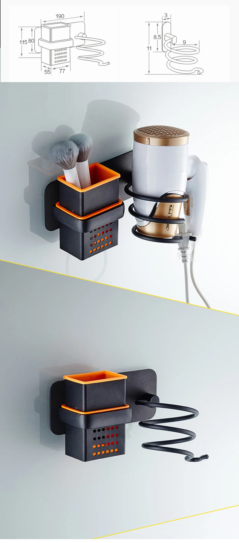 Multi Function Storage: Clear up the bathroom of the debris, toothbrush, comb, cosmetics, hair dryer, so that your bathroom clean and tidy, save space.