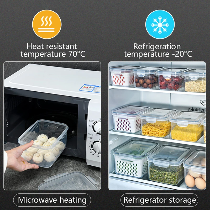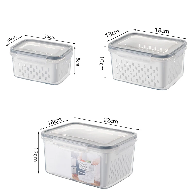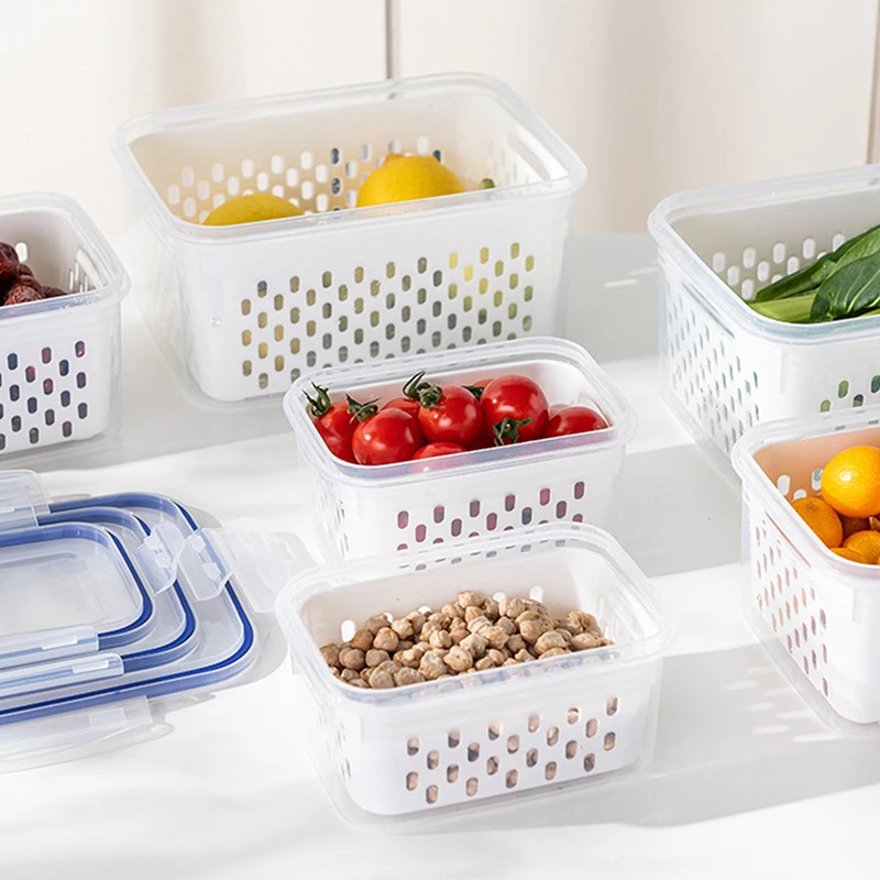Refrigerator Storage Box Fridge Organizer Fresh Vegetable Fruit Boxes Drain Basket Storage Containers Pantry Kitchen Organizer