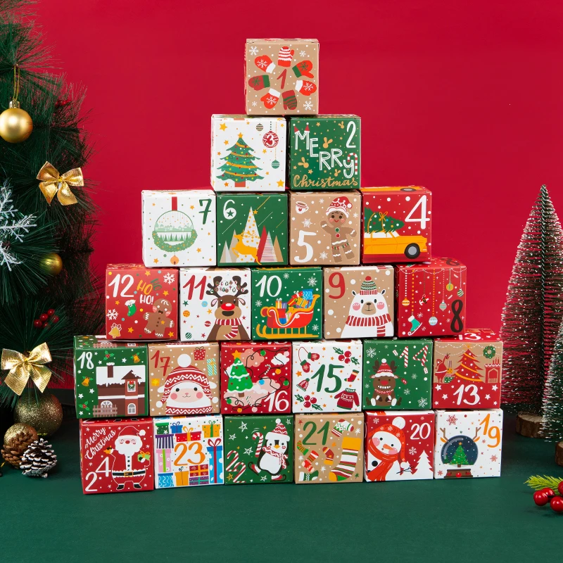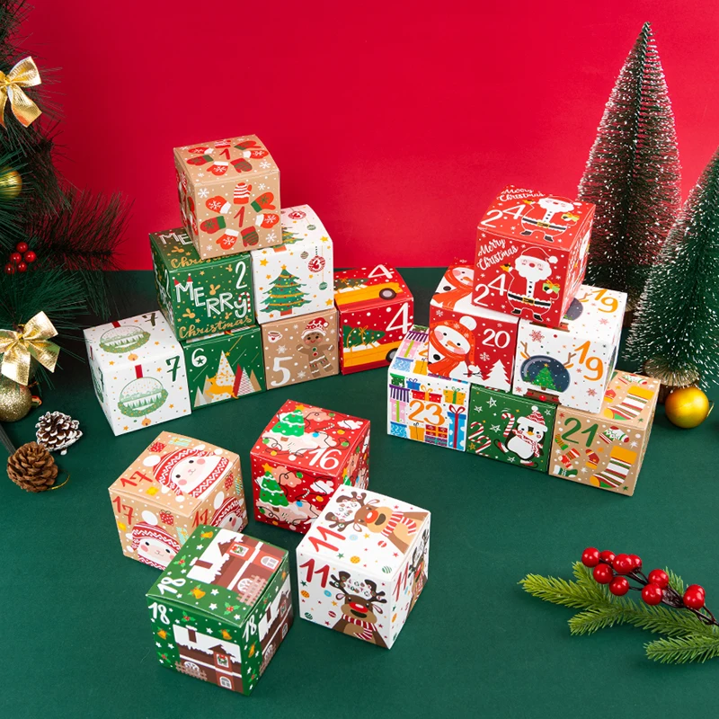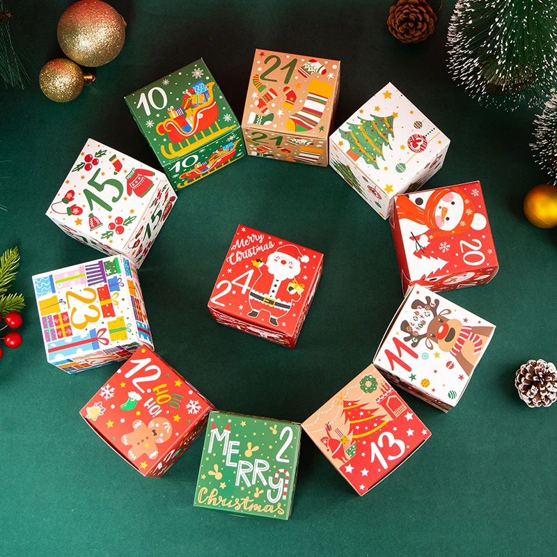 StoBag 24pcs/1set Merry Christmas Kraft Paper Gift Box Decoration Candy Chocolate Packaging Handmade Child New Year Party Favors