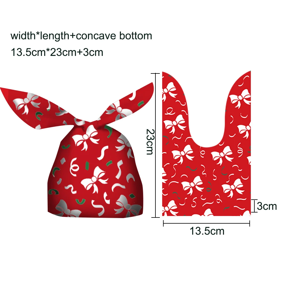 10/20pcs Christmas Rabbit Ear Candy Bags Plastic Carton Santa Claus Snowman Candy Bags For Xmas Noel Cookies Packing Supply