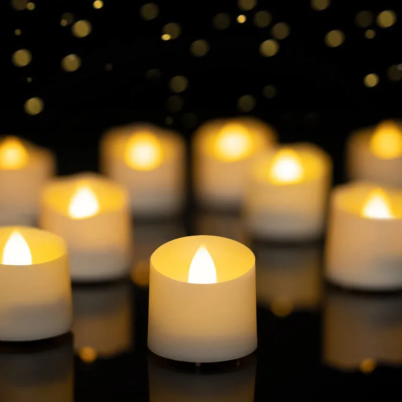24/48pcs Flameless LED Tealight Electric Fake Candle in Warm White Flickering Bulb Wedding Light Romantic Votive Candles Lights