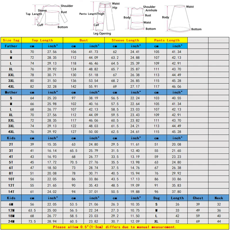 A: For example, size 6T for Kids, size M for Mother and XL For Father,