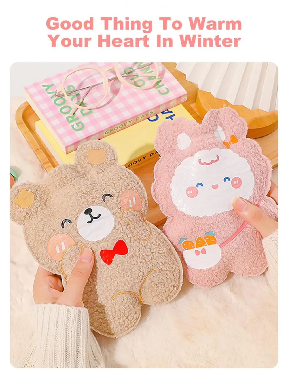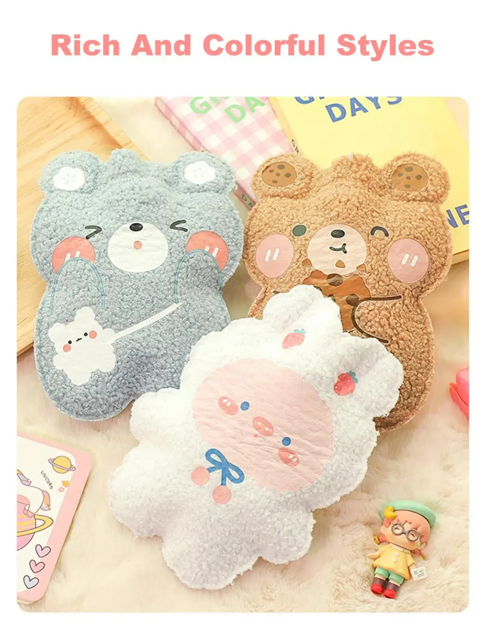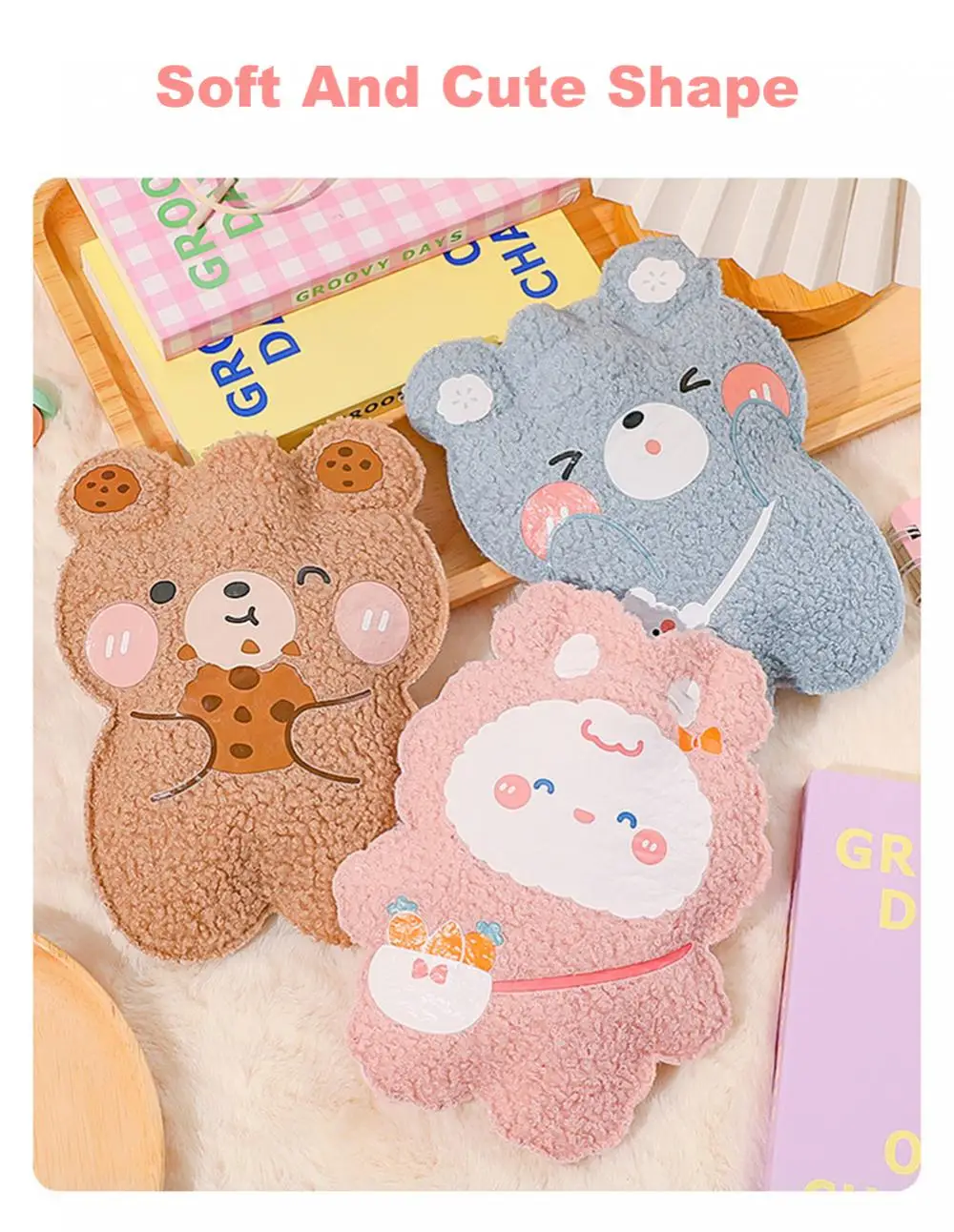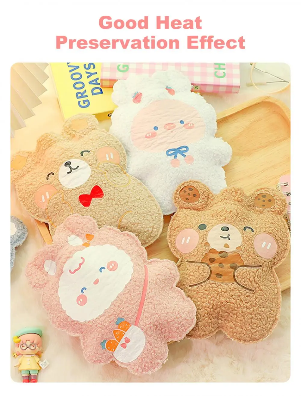 350ml Winter Mini Hand Warming Bag Cartoon Soft Plush Bear Hot Water Bottle Reusable Hot Water Bag Cover Hand Warmer Hot Belly