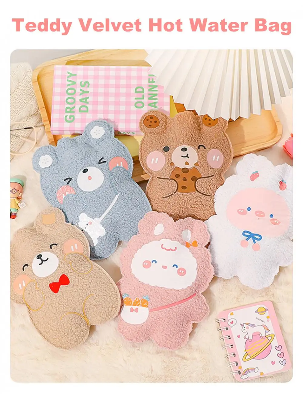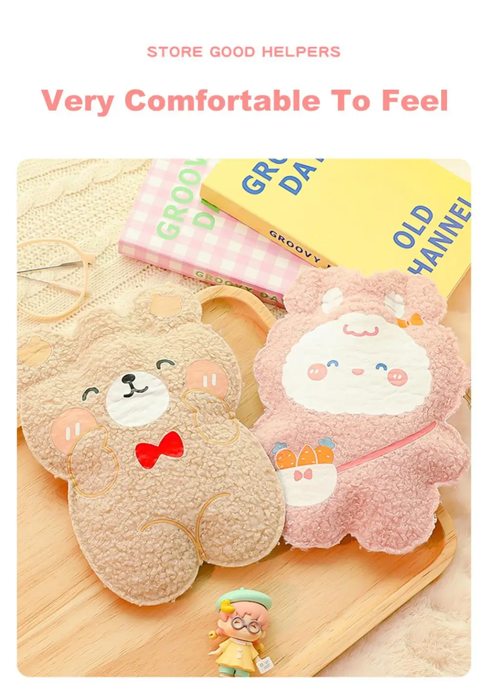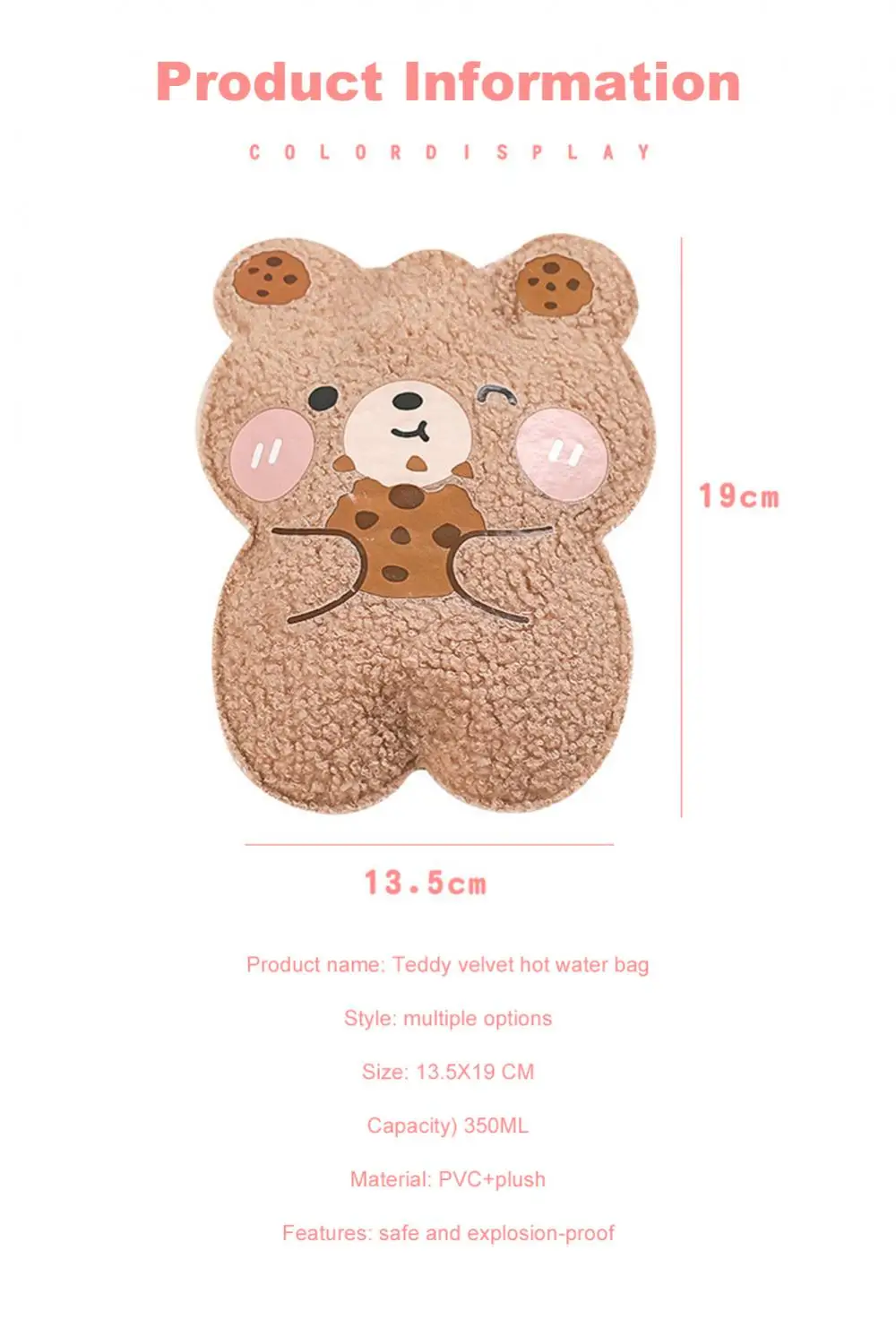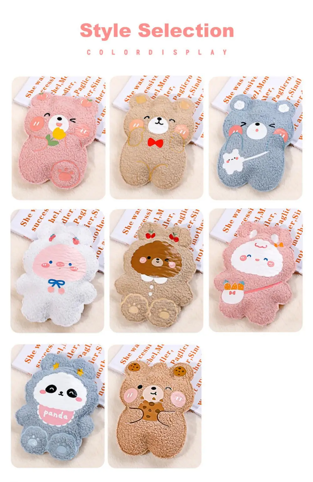 350ml Winter Mini Hand Warming Bag Cartoon Soft Plush Bear Hot Water Bottle Reusable Hot Water Bag Cover Hand Warmer Hot Belly