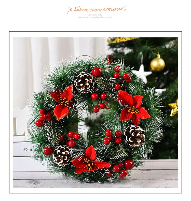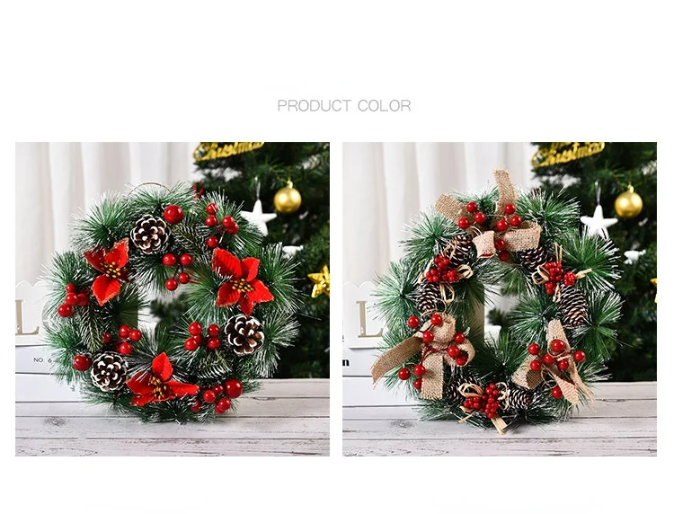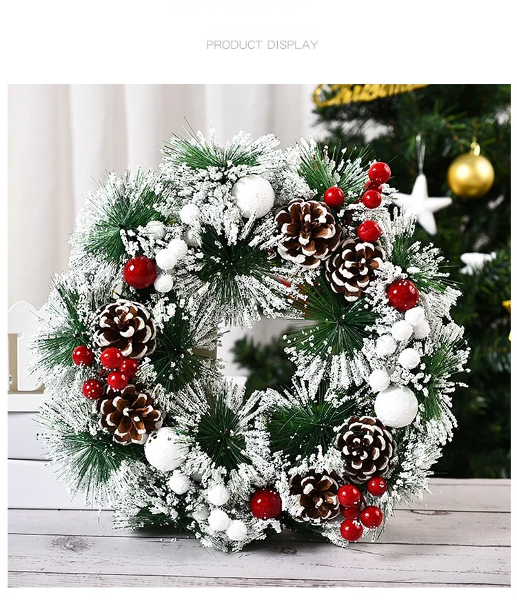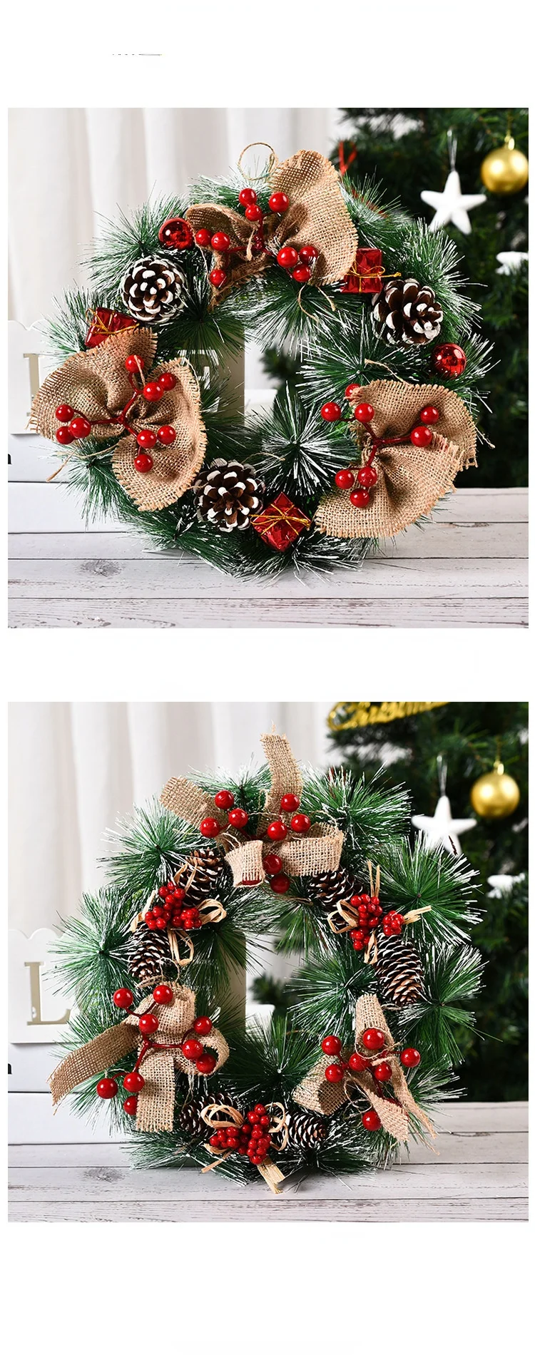 Christmas Wreath Artificial Pinecone Red Berry Garland Hanging Ornaments Front Door Wall Decorations Merry Christmas Tree Wreath