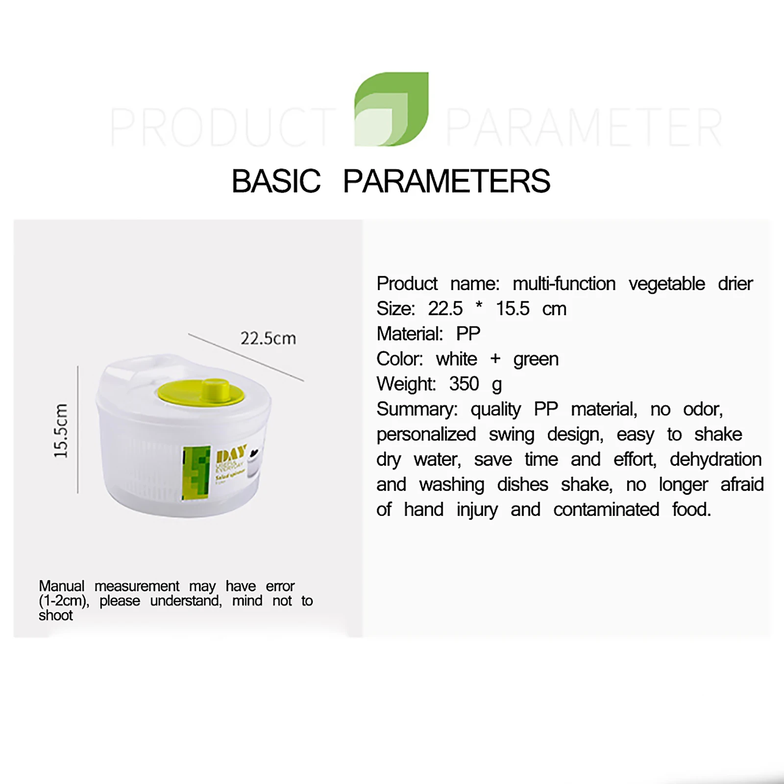 The special spinning design can easily remove the water of the vegetables easily.
