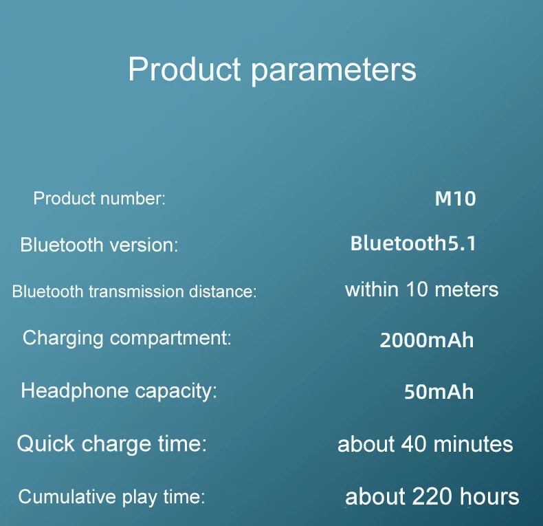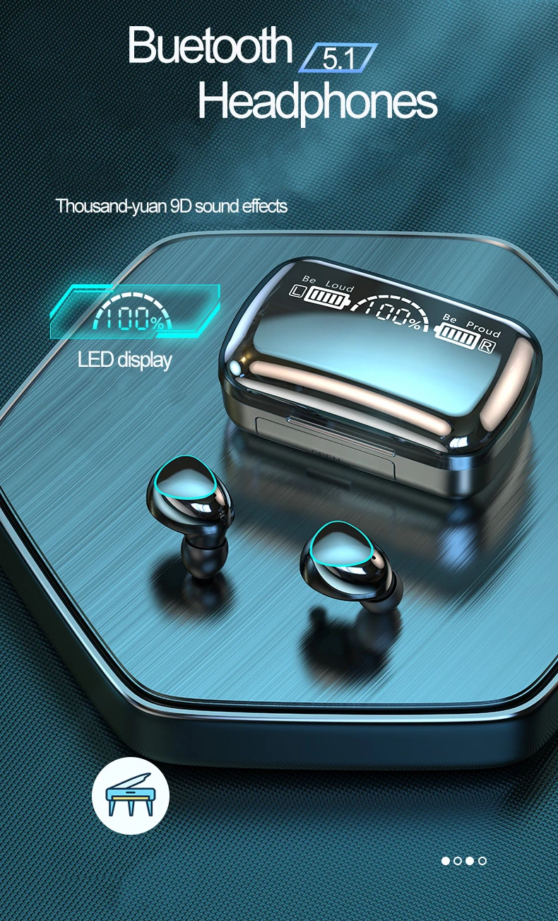 M10 TWS Bluetooth 5.1 Headphones LED Touch Control Wireless Earphone With Microphone 9D Stereo Sports Waterproof Earbuds Headset   Notes:   If the headset you received has only one earbud to use for the first time, then you can...